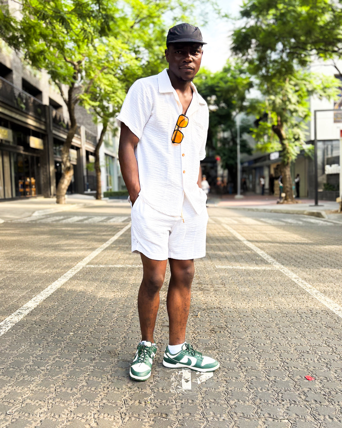Introducing our Menswear Shirts, made from premium quality linen blend for unparalleled comfort and elegance. The beautiful open collar and wooden button detailing add a touch of sophistication. Pair it with our matching shorts, available in various colours. Upgrade your wardrobe with this exclusive piece.