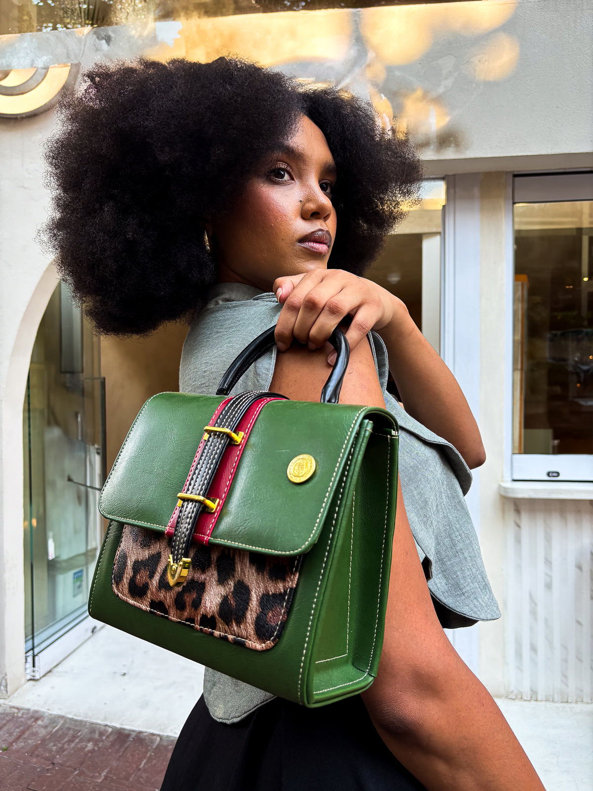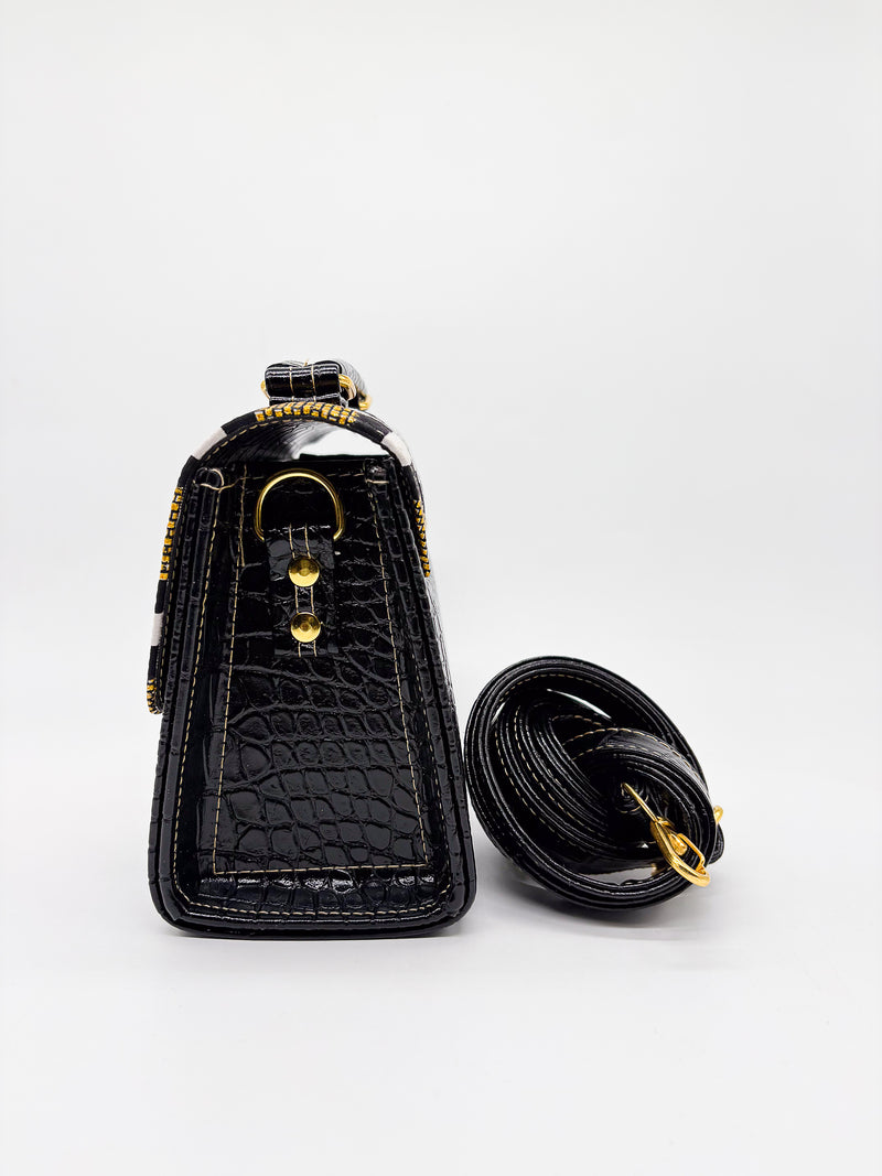 Kiki Handbag Black + White Leopard Print
