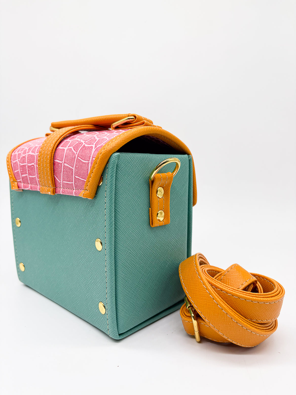 Say hello to Grace — a handbag inspired by unapologetic style and timeless power. With its durable vegan leather construction and striking African Gold Wax fabric accents, this piece channels the regal, fearless energy of icons like Grace Jones.