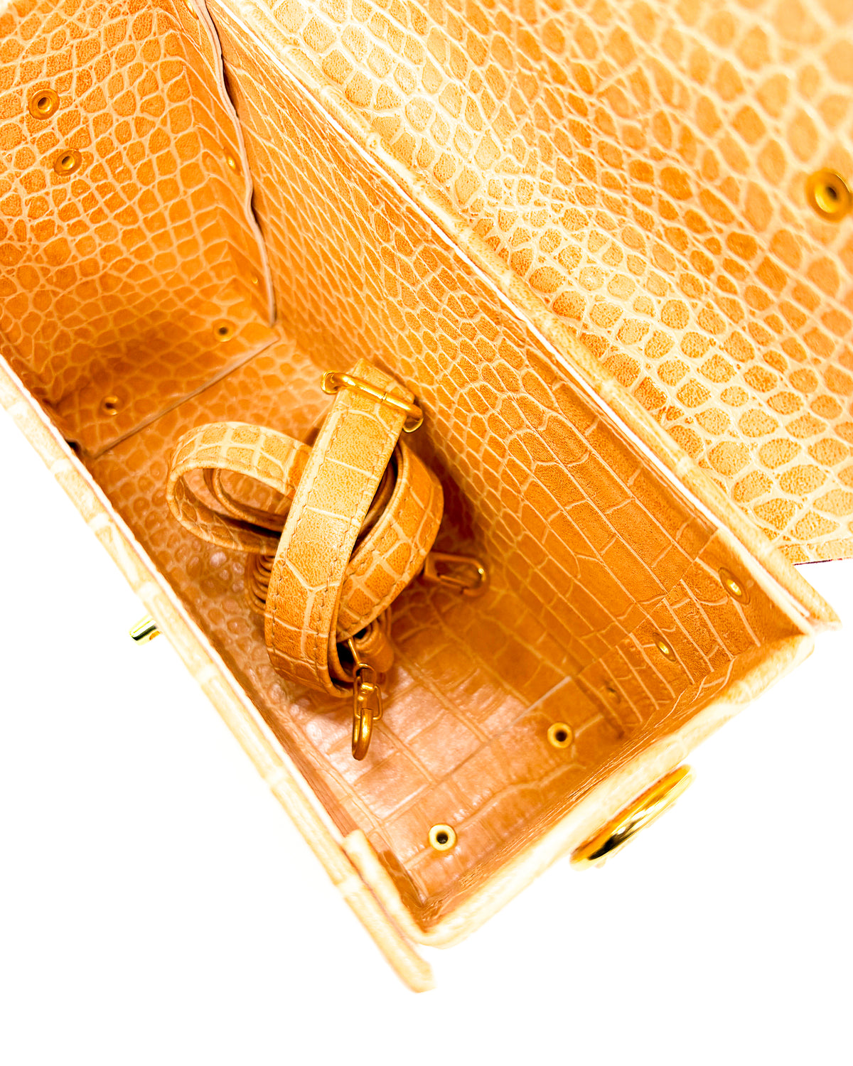 Boitumelo is derived from Tswana, meaning "happiness". This handbag is the perfect everyday accessory, with its medium box shape and vegan leather material. It boasts a reliable lock clasp and a comfortable fit, ensuring easy carrying. The added touch of African gold wax gives it a subtly unique and stylish appearance. Get happy with the Boitumelo crossbody/sling bag!