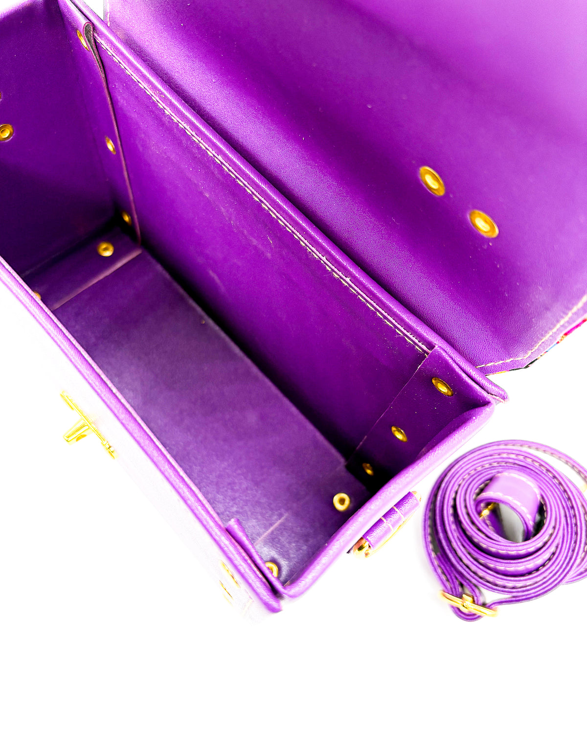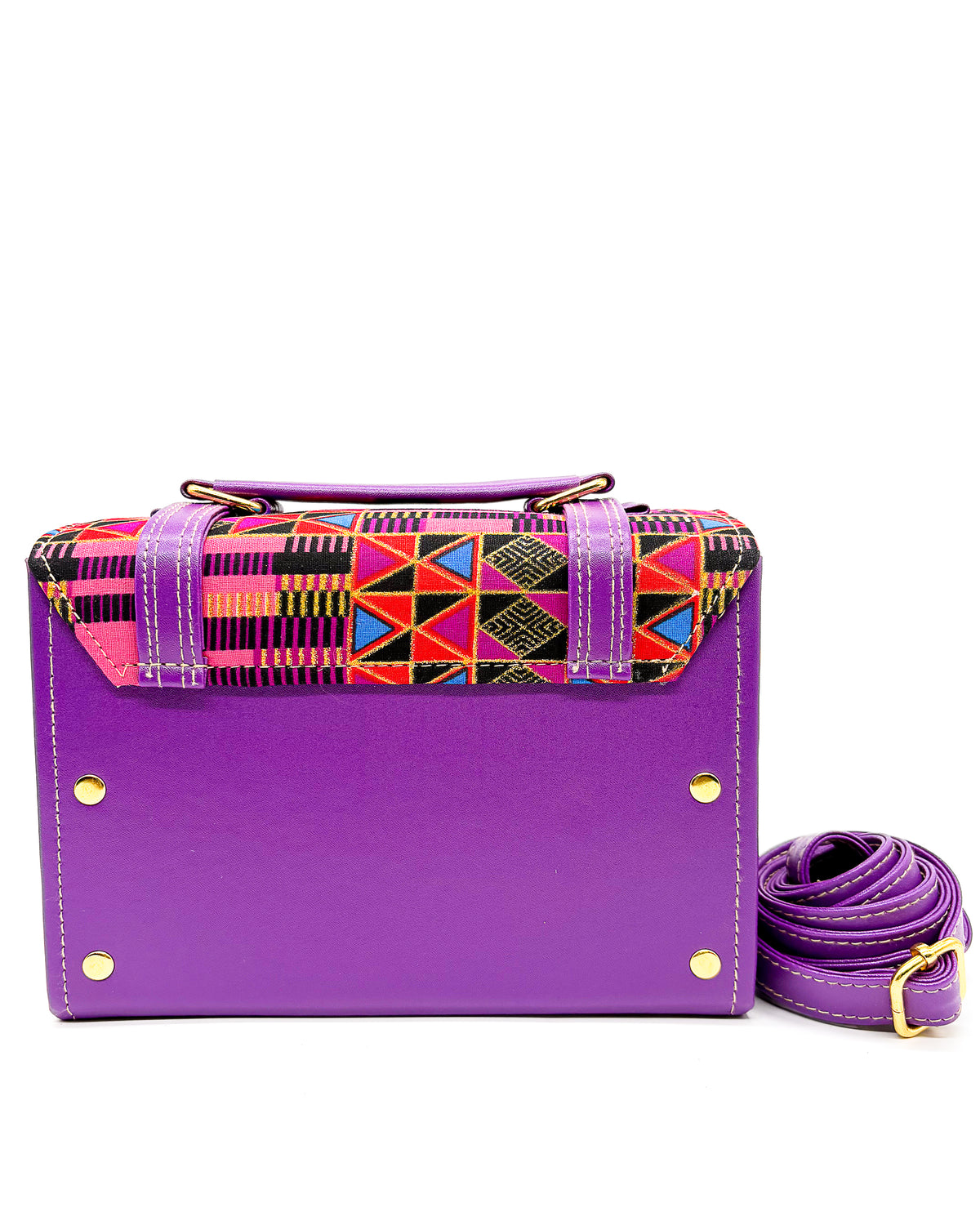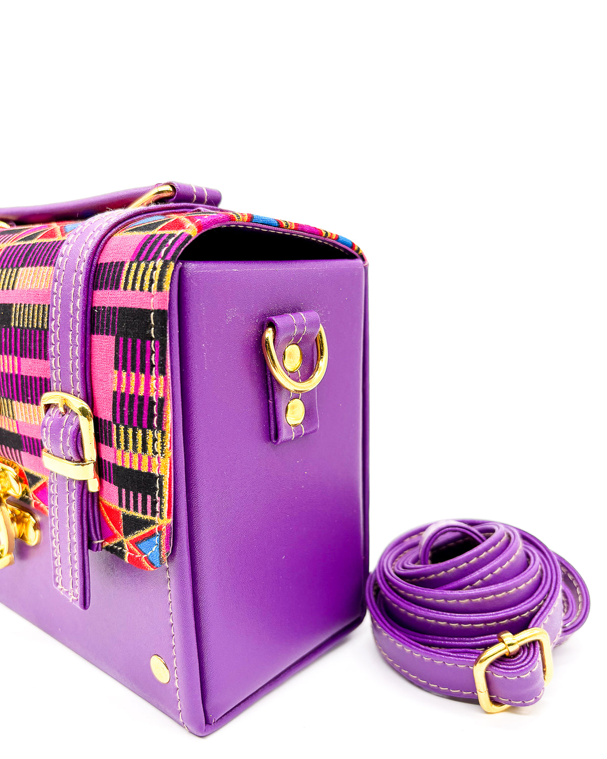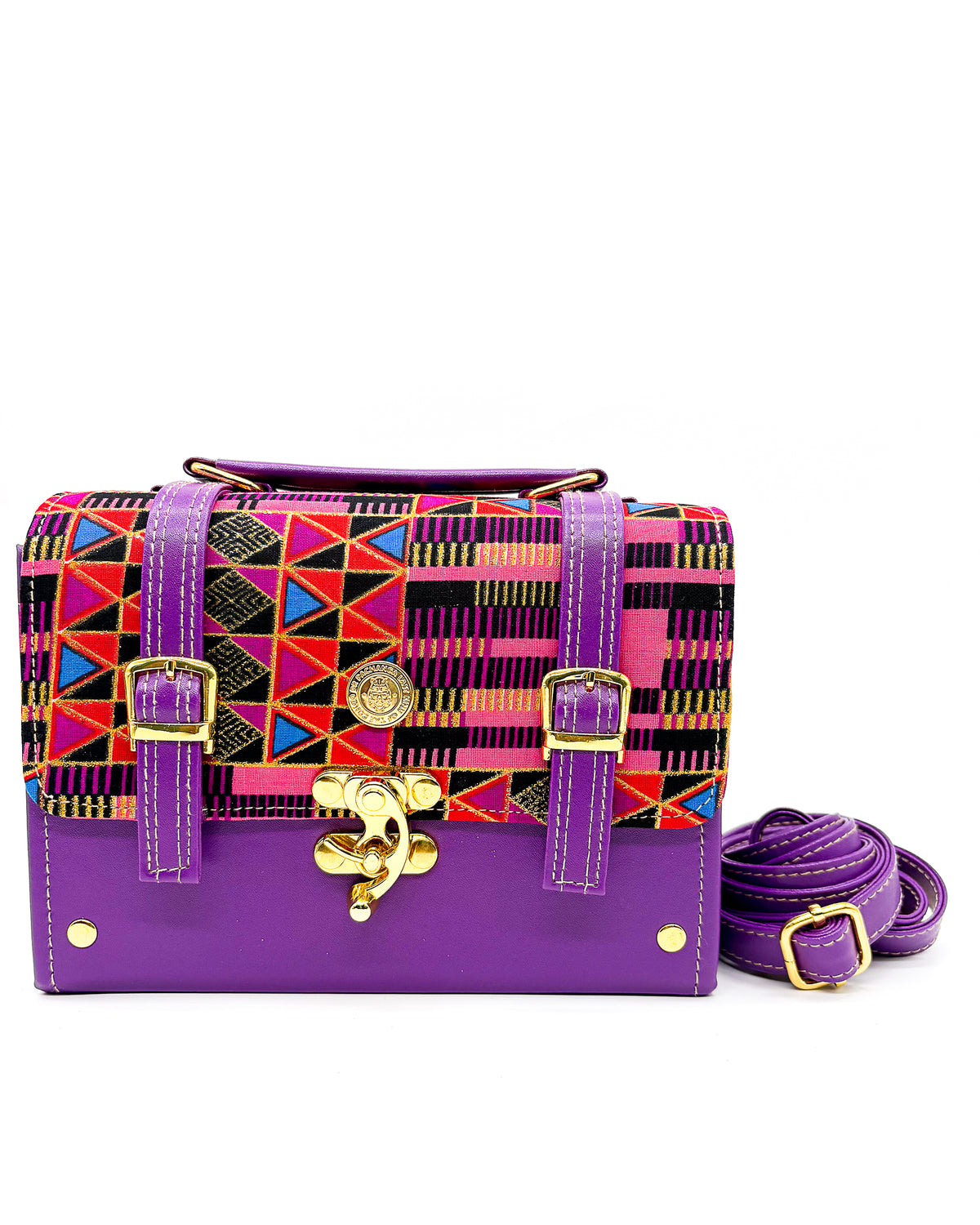 Boitumelo is derived from Tswana, meaning "happiness". This handbag is the perfect everyday accessory, with its medium box shape and vegan leather material. It boasts a reliable lock clasp and a comfortable fit, ensuring easy carrying. The added touch of African gold wax gives it a subtly unique and stylish appearance. Get happy with the Boitumelo crossbody/sling bag!