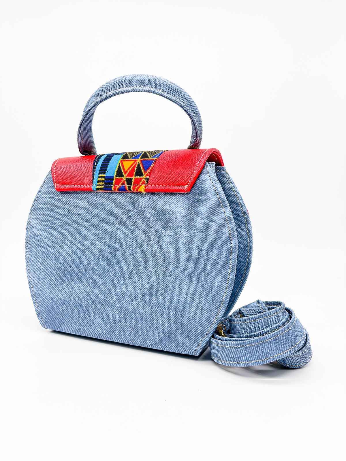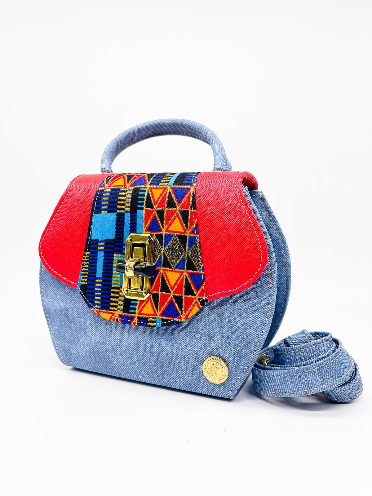 The Kathleen handbag is designed with a timeless elegance, perfect for adding a sophisticated touch to any look. Crafted with African Gold Wax fabric and vegan leather, it features a twist-lock, adjustable strap, and round shape for maximum style and convenience. Named after a friend of Dr. Pachanga, this bag is sure to make any outfit pop with flair and pizzazz.