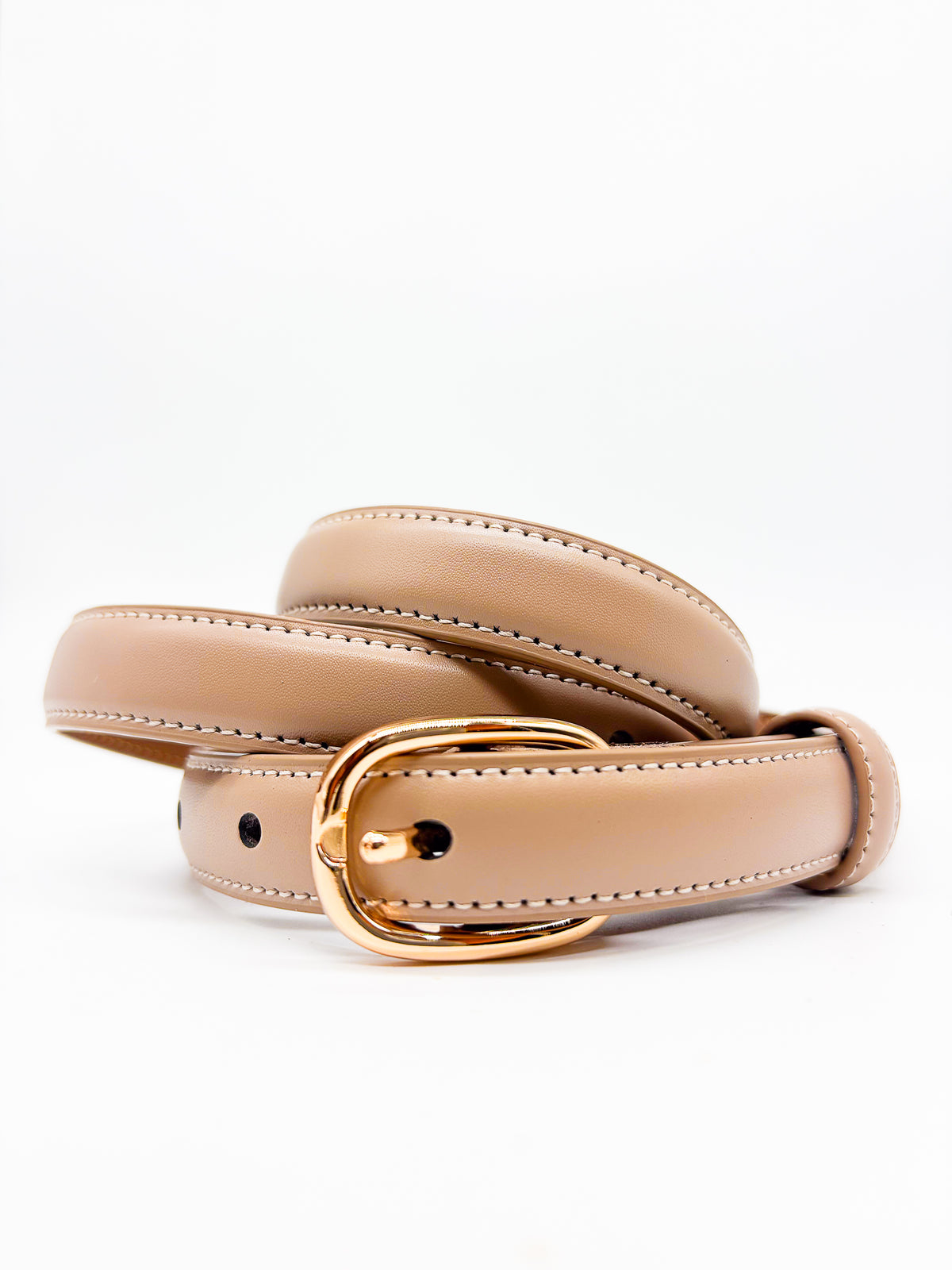 Gold Buckled Tan Slim Belt