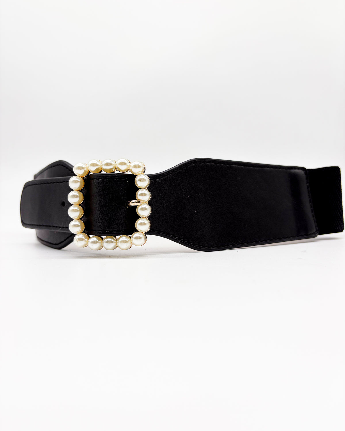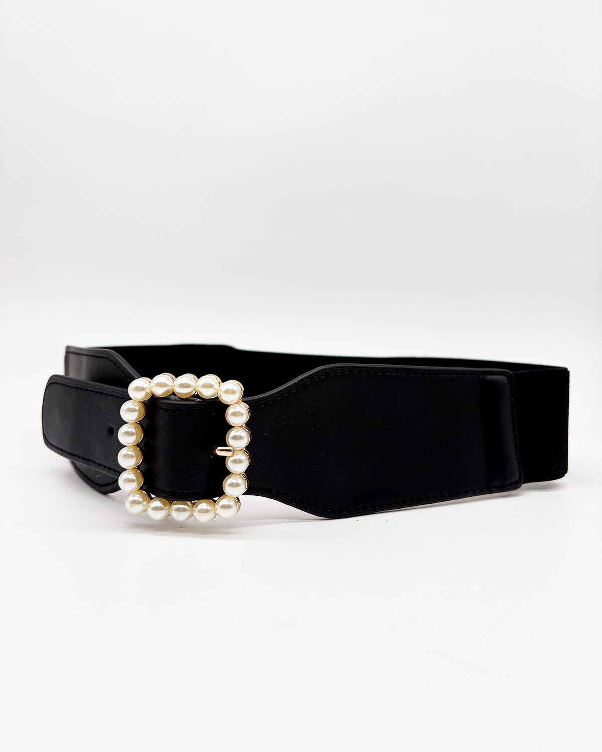 Black Pearly Buckle Elastic Leather Belt – Comfort Meets Elegance