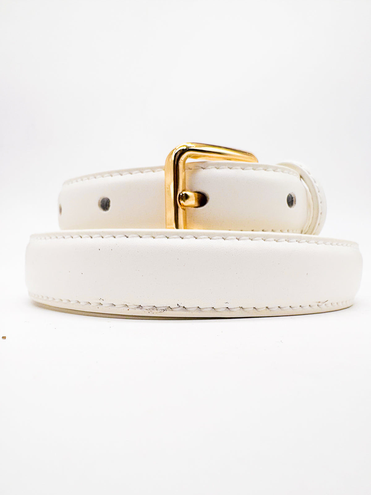 Gold Square Shaped Buckle White Slim Belt