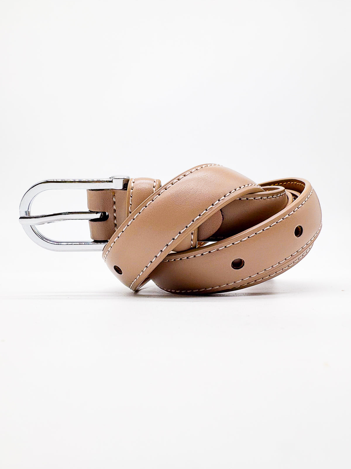 Add a touch of timeless class to your look with this rounded buckle, vegan-friendly belt. Crafted with care, it features: